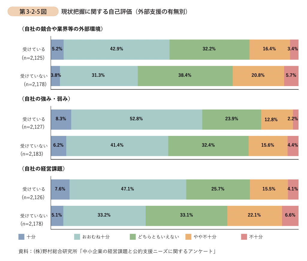 また、外部支援を受けている経営者の方が、自社の現状を把握できていると評価もしています。