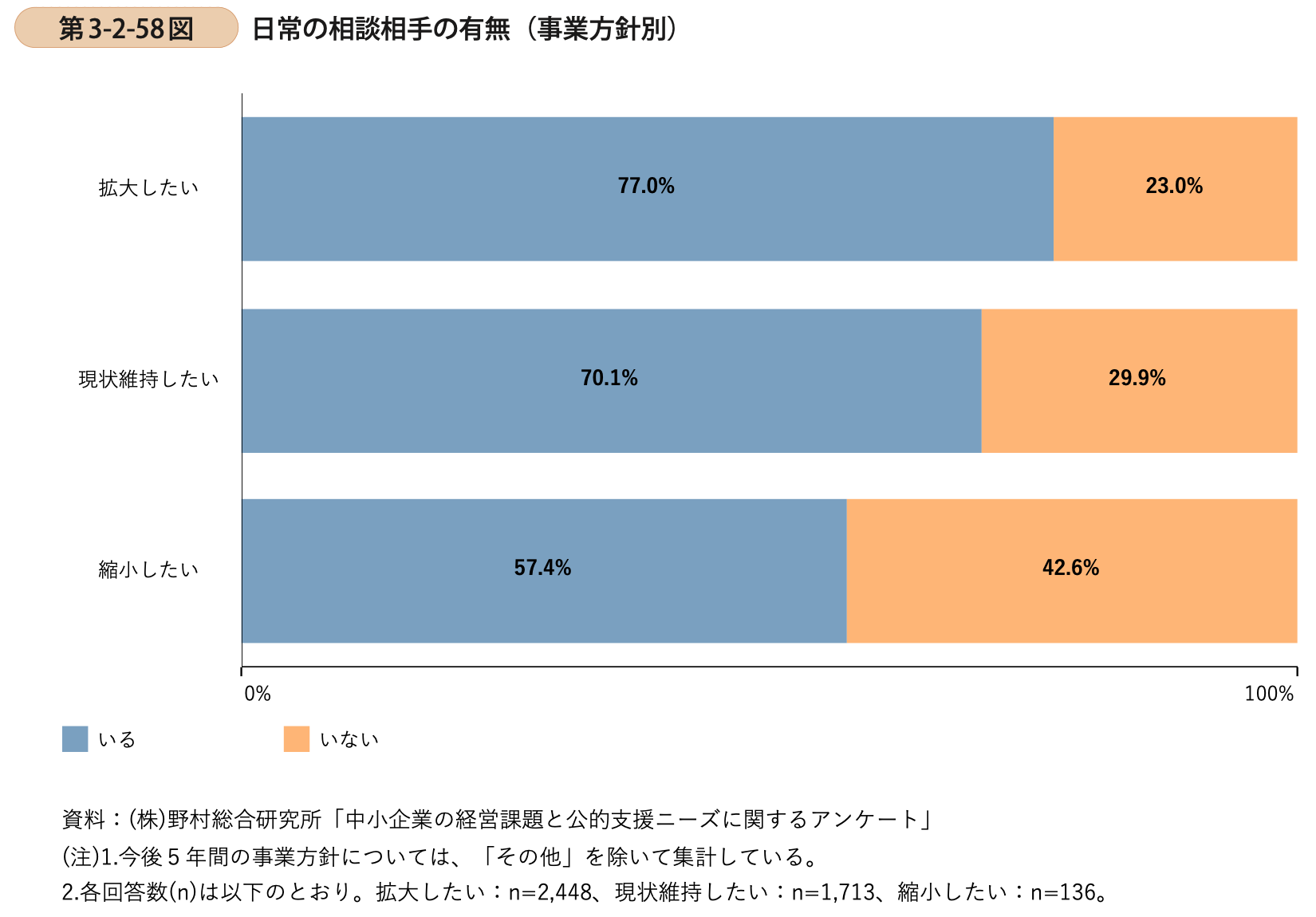 事業方針が拡大方向にある経営者ほど、日常の相談相手がいるというデータがあります。